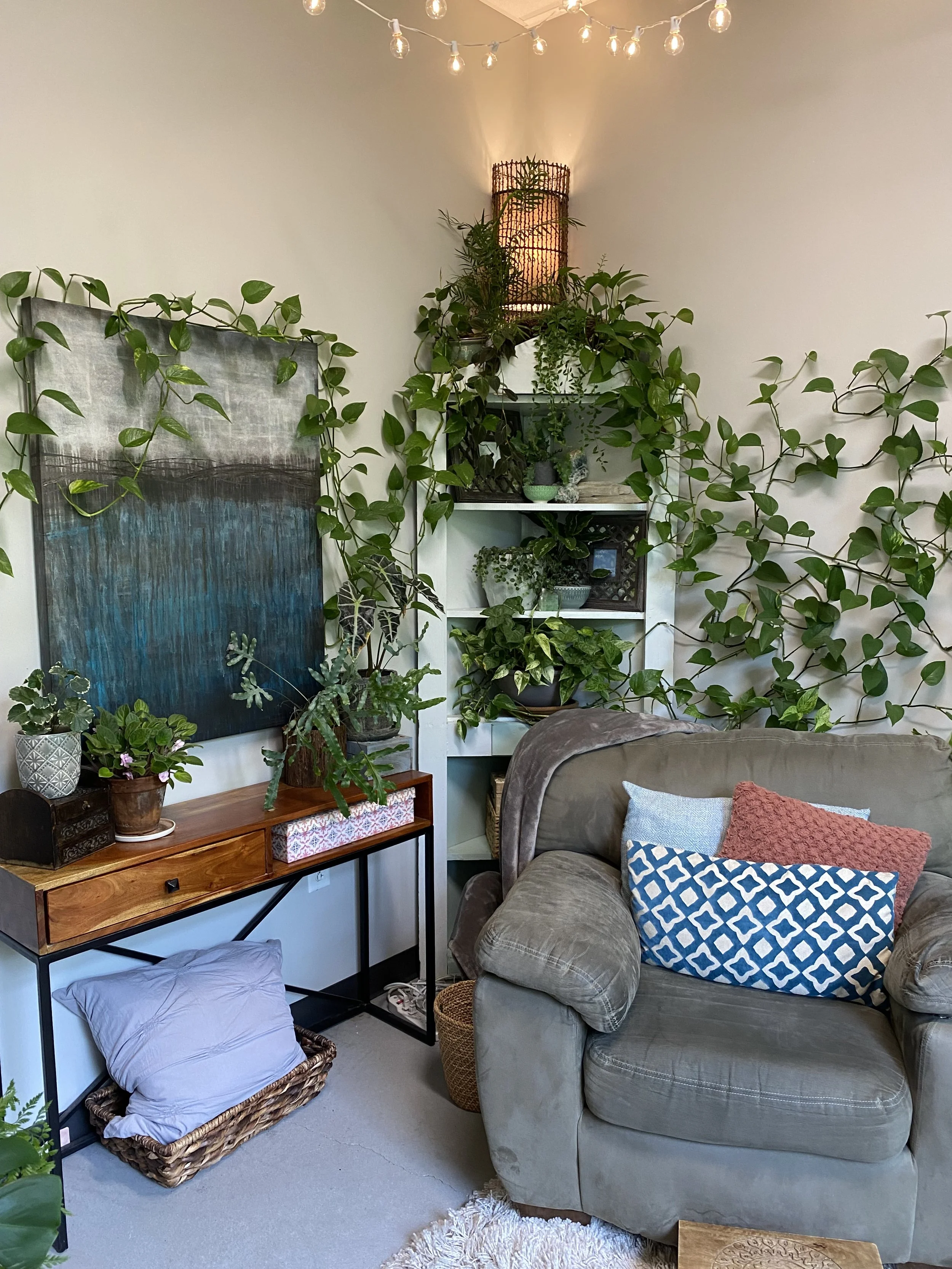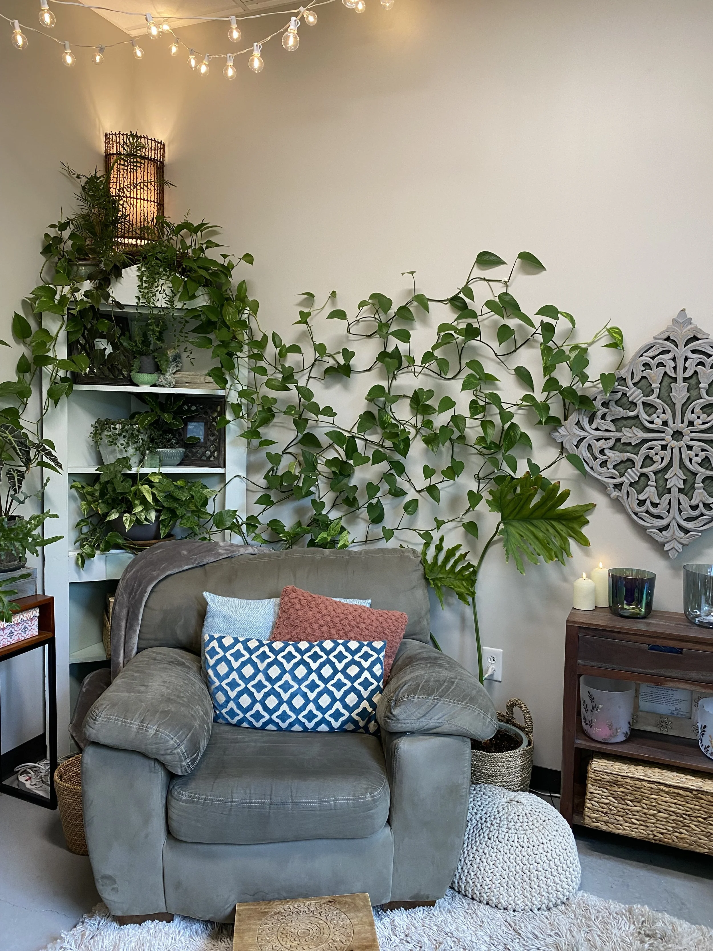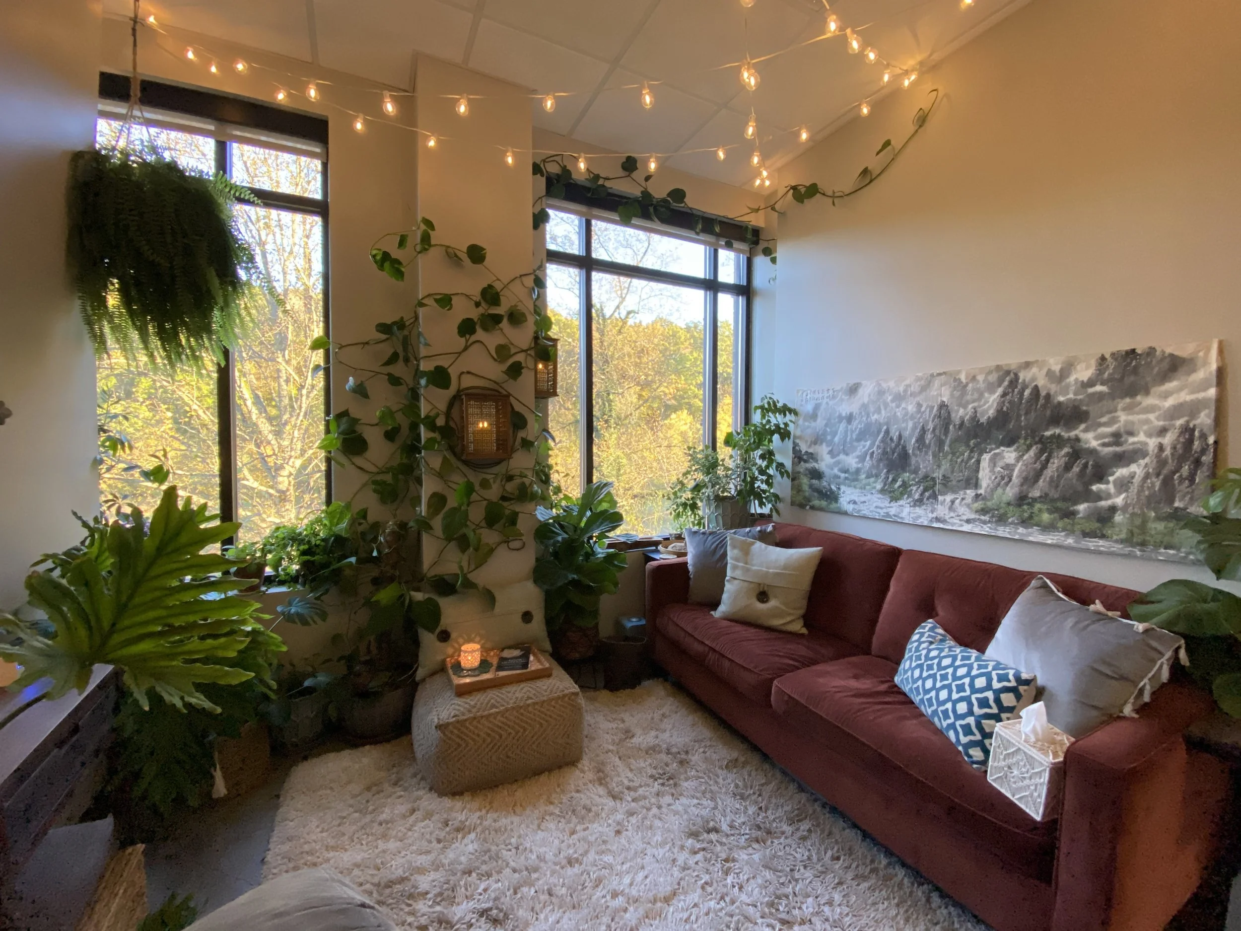 You don’t have to give eye contact, you can put your shoes on the couch, you can slump into the pillows, you can burrow under the weighted blanket, you can play with fidgets, you can color, you can stare off into space… You don’t need to burn all that social energy that could be better spent on your healing. Take all the room you need to flow and be comfortable as you are.