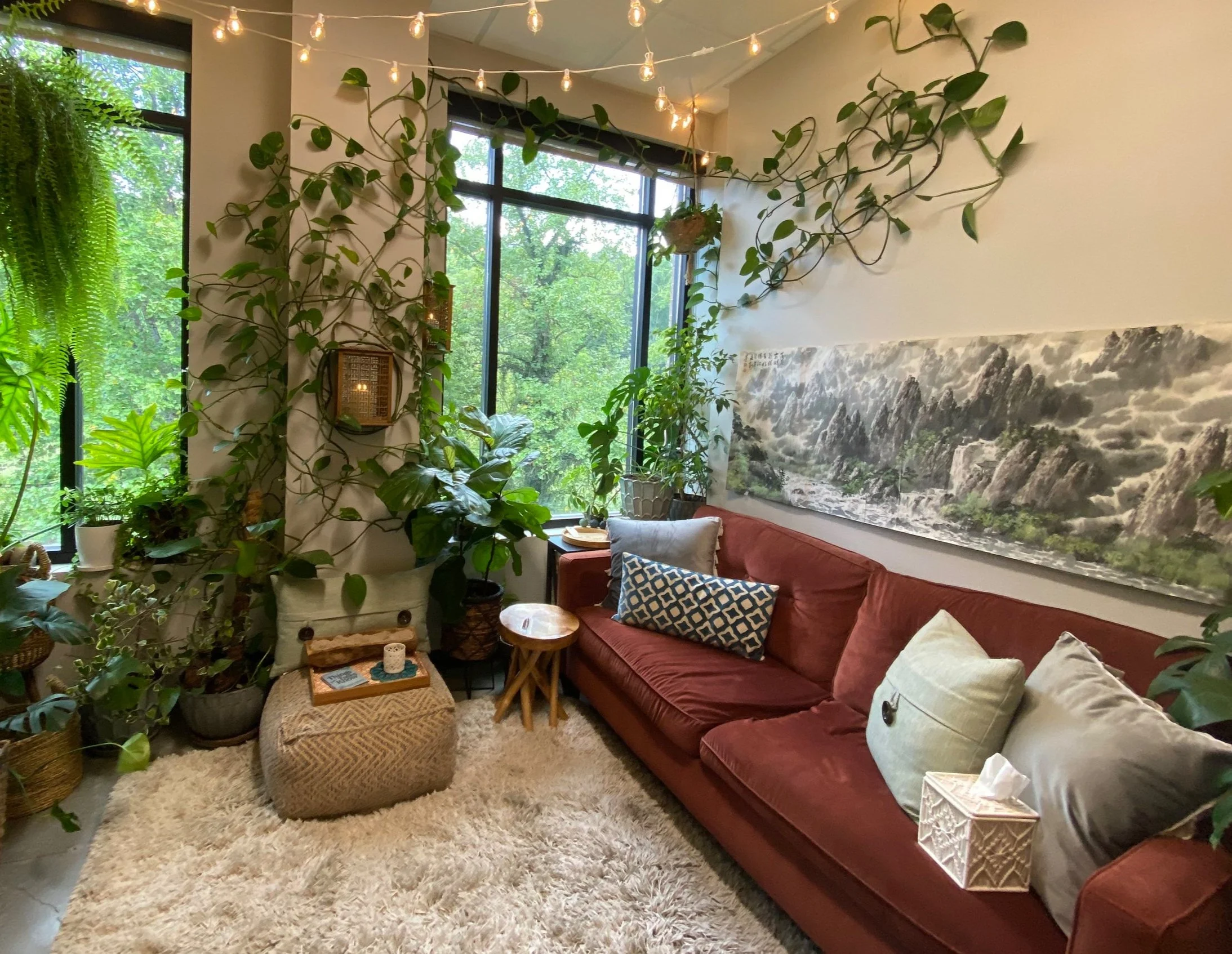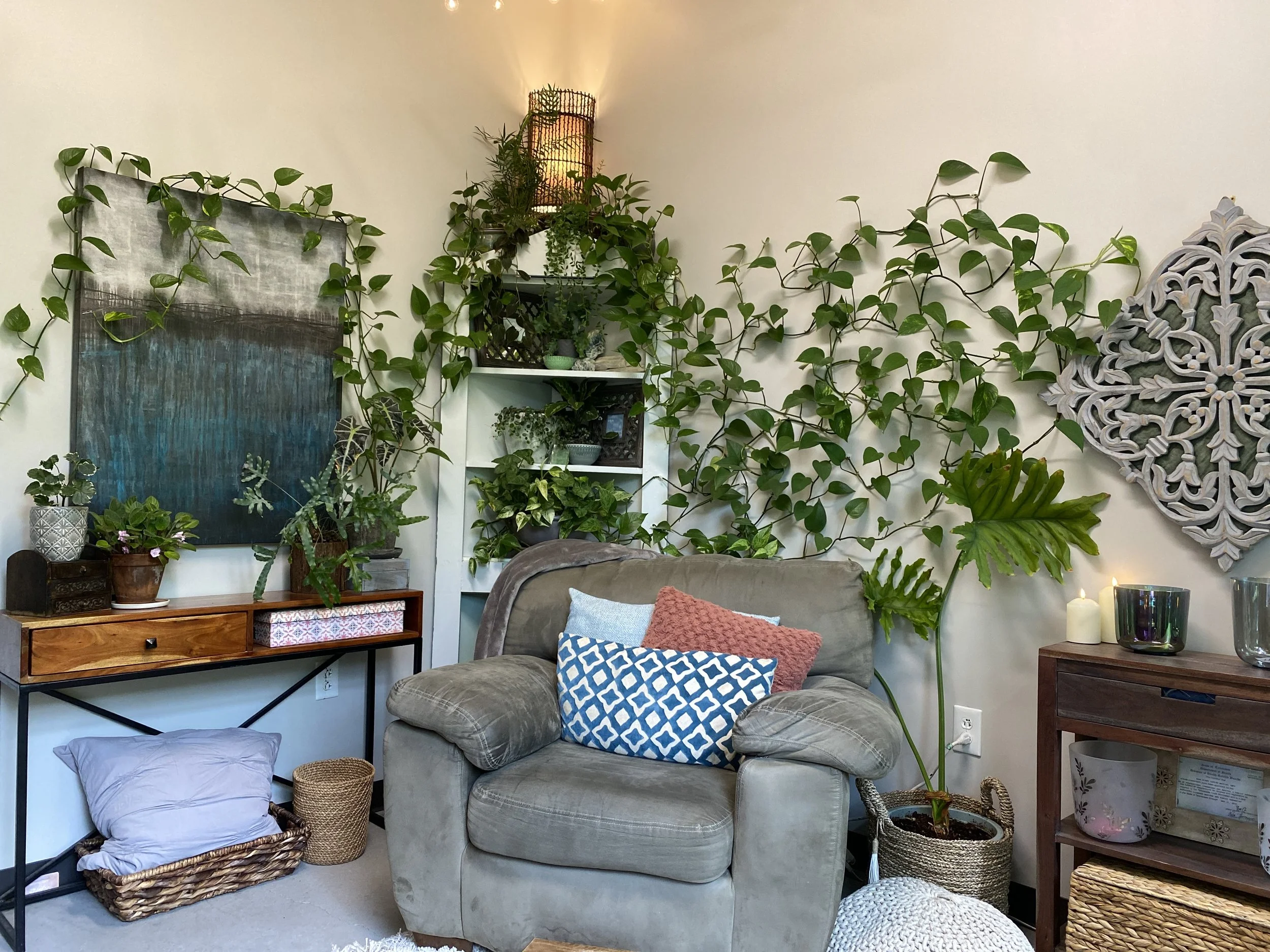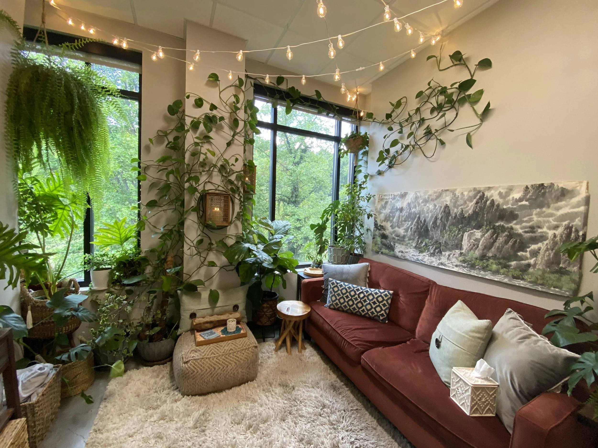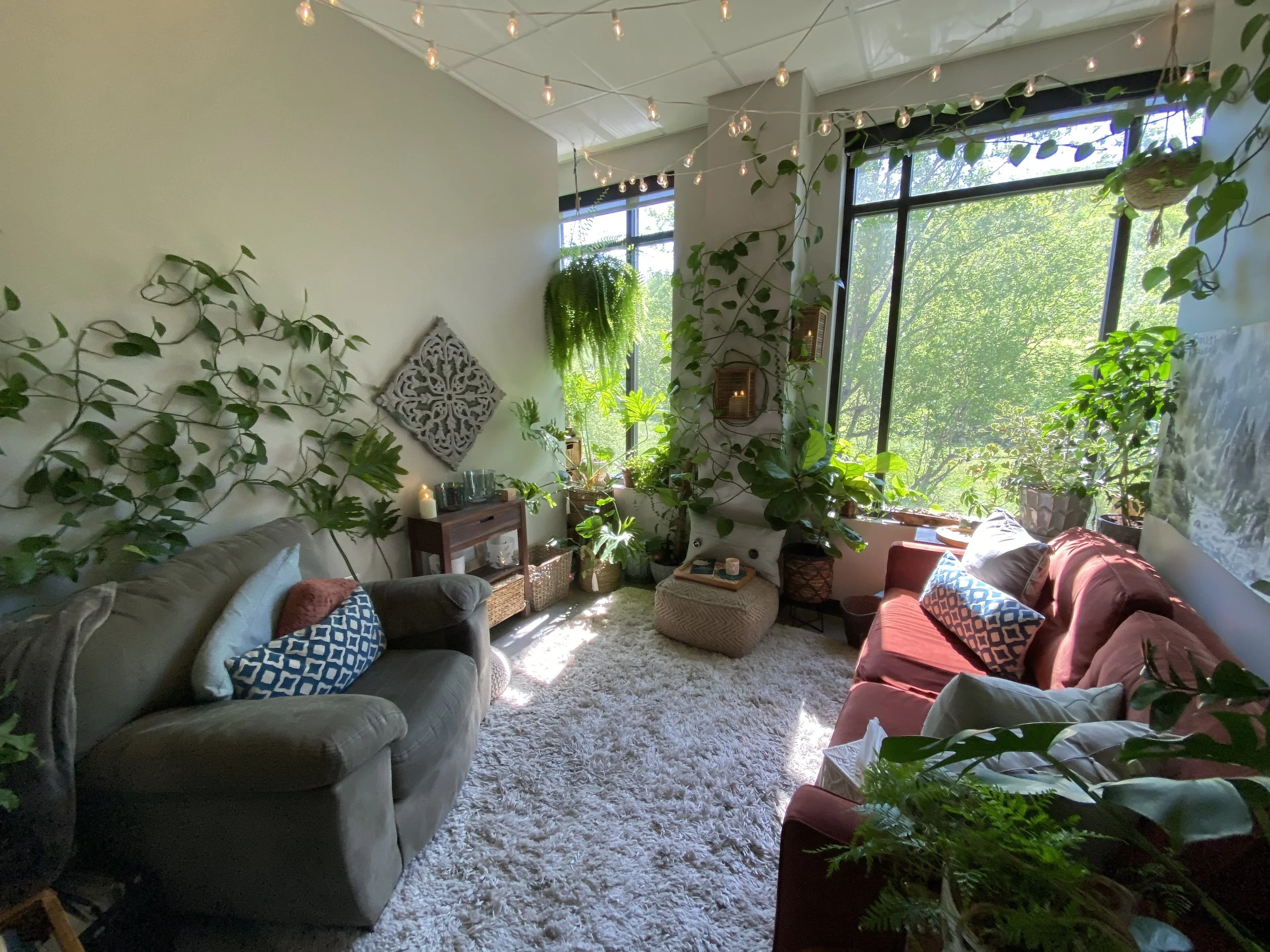 You don’t have to give eye contact, you can put your shoes on the couch, you can slump into the pillows, you can burrow under the weighted blanket, you can play with fidgets, you can color, you can stare off into space… You don’t need to burn all that social energy that could be better spent on your healing. Take all the room you need to flow and be comfortable as you are.